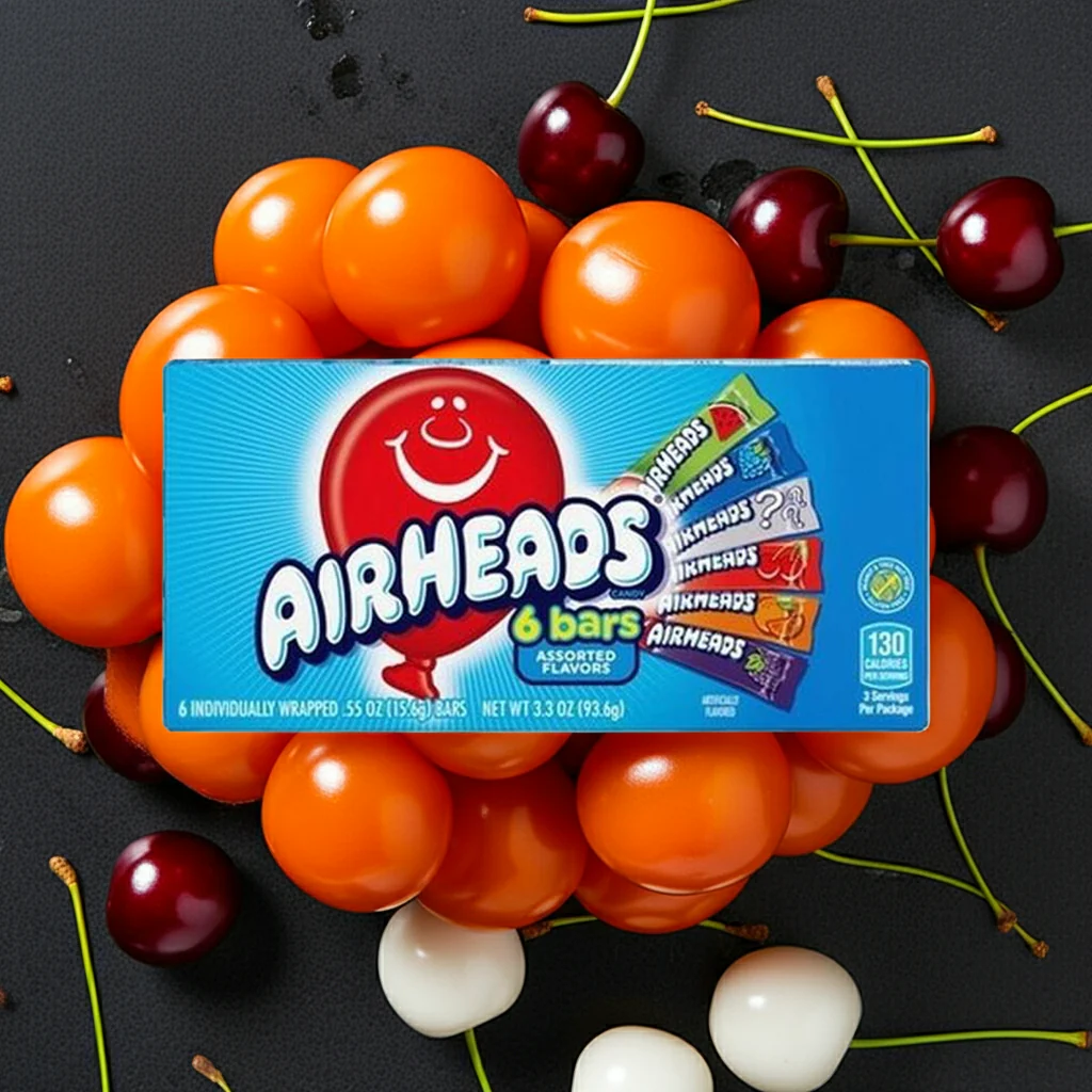 Airheads 6 Bars Assorted Flavors 93.6g is a package of delicious chewy candy that comes in six different flavors. Each bar is soft and pliable, making it easy to chew and enjoy. It's perfect for sharing with friends and family or as a sweet treat for yourself