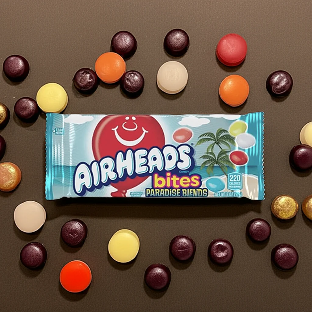 You can now get a taste of paradise anytime, anywhere. The Airheads Bites Paradise Blends Bag is packed to the brim with delicious fruit flavour sugar-coated candy pieces.
