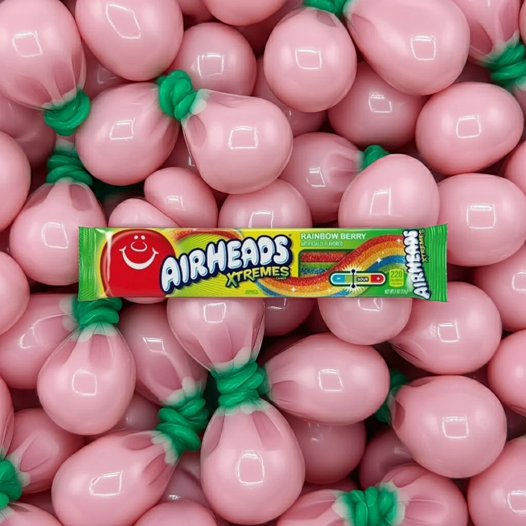 Airheads Xtreme Rainbow Berry Sour Belts bring you extreme flavor in every tangy bite! You can twist, roll, and pull on these chewy candy strips, covered with sour sugar.