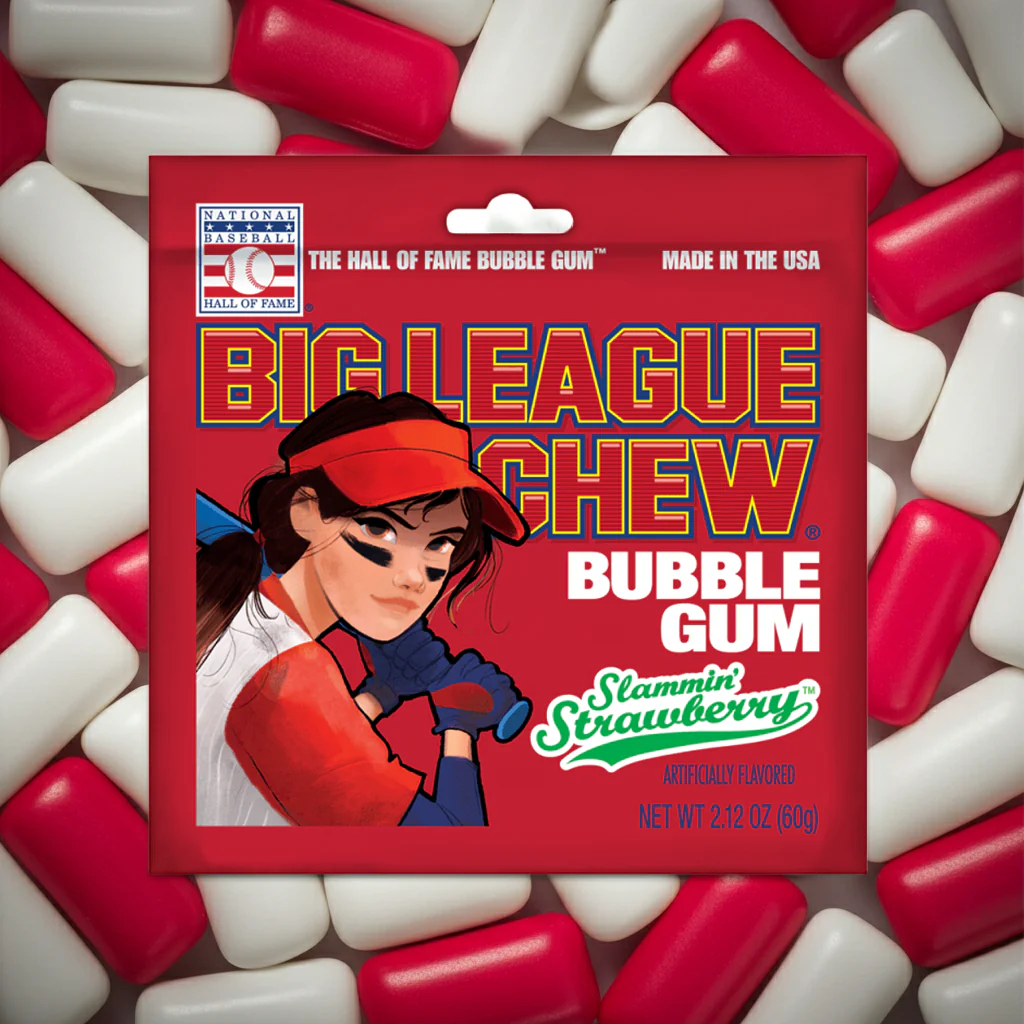 Big League Chew Slammin' Strawberry (60g) is a popular and flavorful chewing gum designed to mimic the experience of chewing on a wad of chewing tobacco used by baseball players. This particular flavor, Slammin' Strawberry, offers a delicious taste of sweet and juicy strawberries.