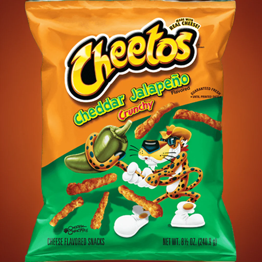 Cheesy Cheetos meet spicy jalapeño in this dangerously cheesy snack. Cheetos crunchy cheddar jalapeno cheese flavored snacks are made with real cheese.
