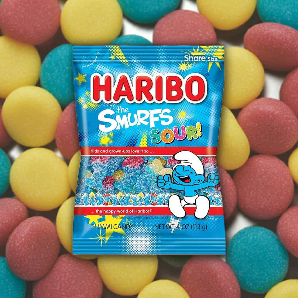This 113g bag is filled with a sour twist on the classic Smurfs gummies. Each bite-sized candy is shaped like your favorite Smurfs characters, complete with their iconic blue color. With a tongue-tingling sour coating, these gummies pack a punch of sour goodness that will keep you coming back for more.