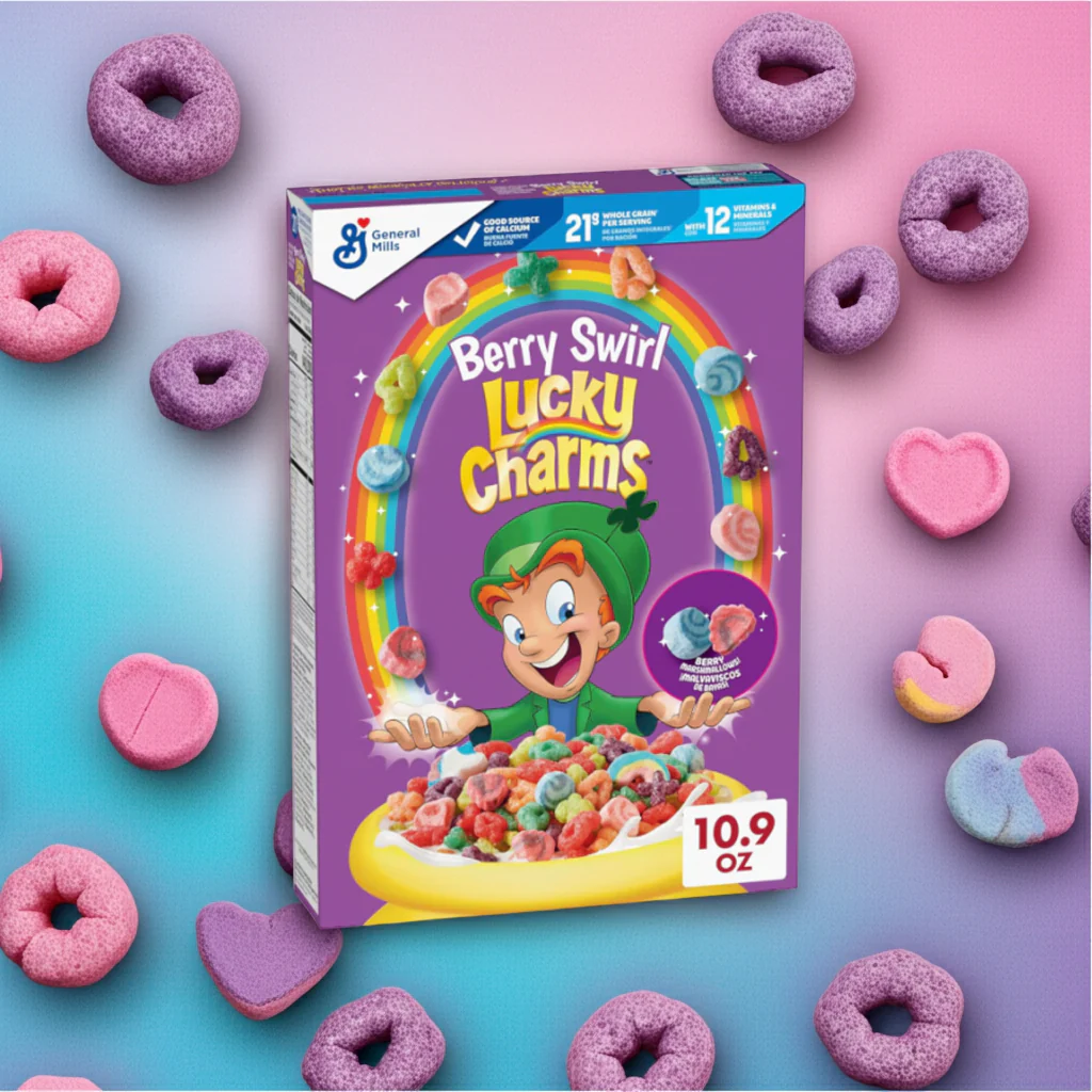 Lucky Charms Berry Swirl Cereal delivers a delightful combination of crunchy oat pieces and colorful marshmallows infused with berry flavors. This 309g box offers a whimsical breakfast experience that appeals to both kids and nostalgic adults seeking a touch of magic in their morning routine.